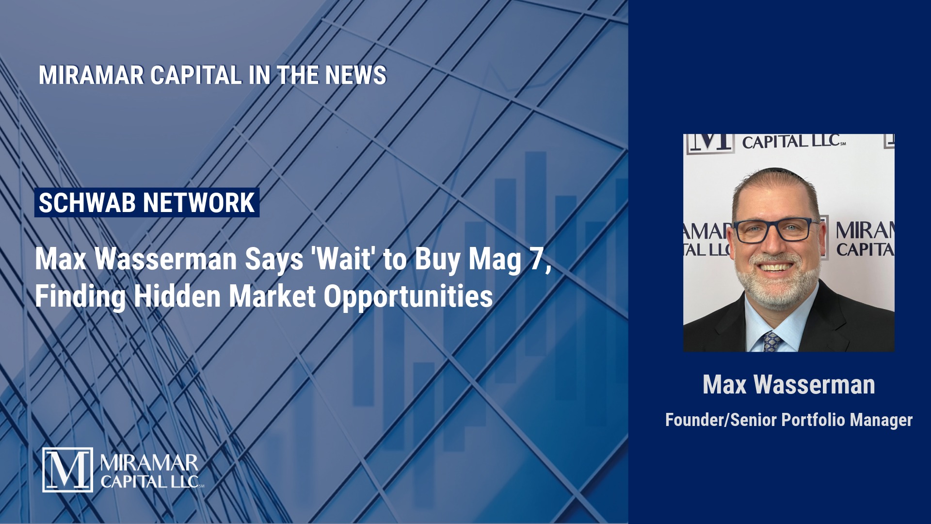 Check out Max Wasserman on Yahoo Finance with Brad Smith beginning at the 2:11 mark. Max discusses how one can implement a de-risked strategy right now, what areas of the market investors should and shouldn’t be looking at, and the different pharmaceutical and defense stocks Miramar Capital is bullish on.
